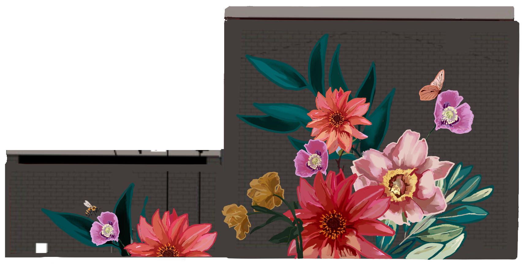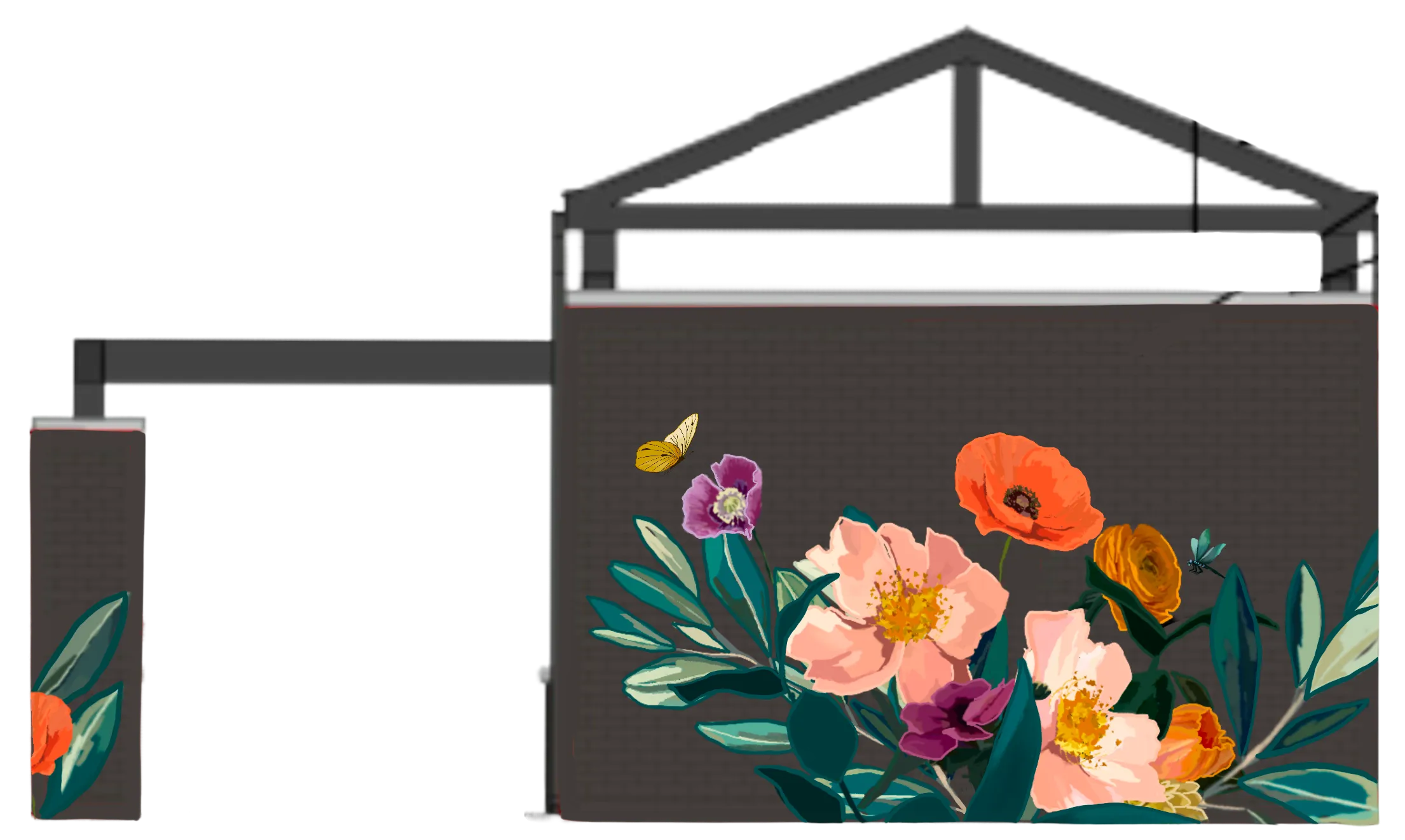 Vibrant blooming murals for five amenity buildings within Fort Collins newest community.
