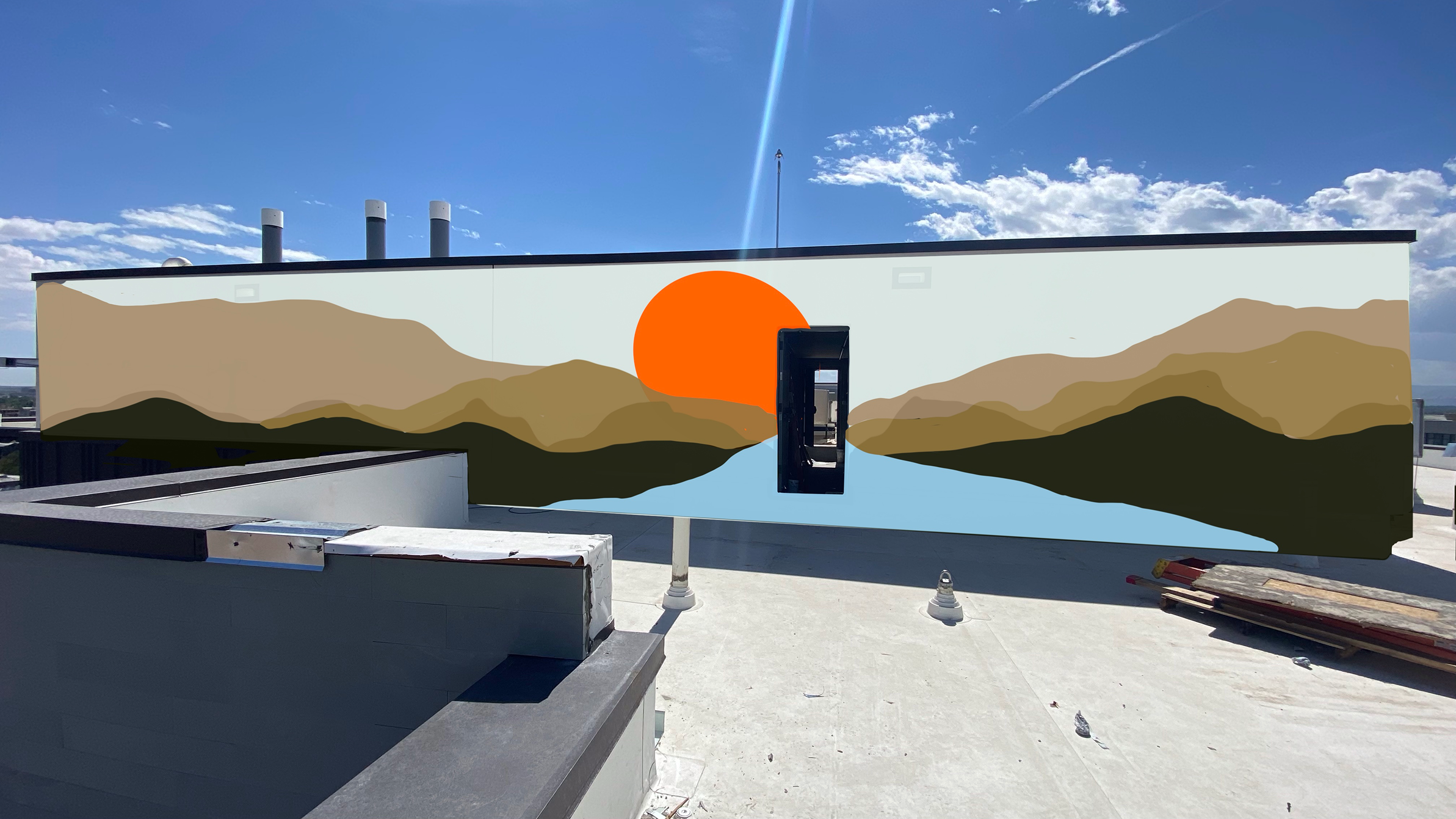 A mural eighteen stories above the city with epic views of downtown Denver and the Rockies.